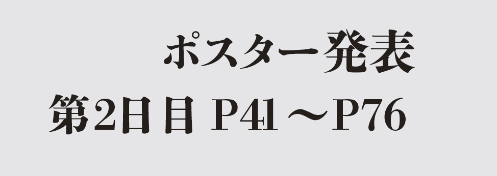 第9回日本細胞外小胞学会2日日(10月25日)のポスター発表(13:00-15:00)には、P41からP76までの発表がおこなわれます。奇数番号の演題は13:00-14:00、偶数番号の演題は14:00-15:00に発表者の説明があります。以下、演題と、発表演者のお名前・所属のみを記載しております。